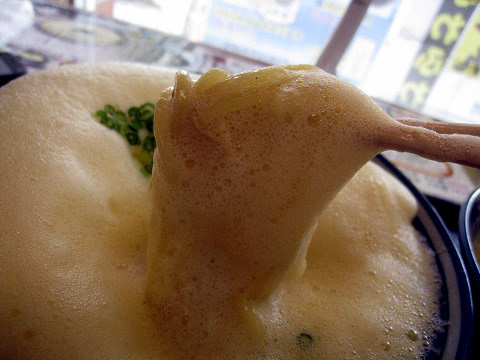 麺まで泡状の物体