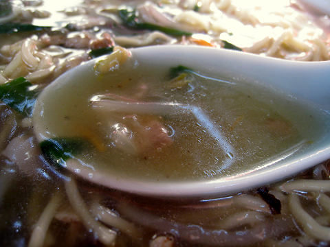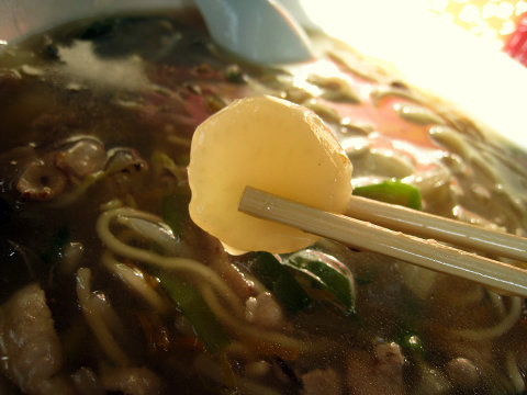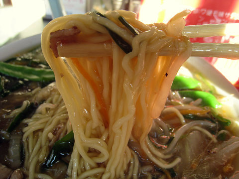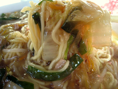 サンマー麺は「麺、サンマー、エンドウ、モヤシ、豚肉、白菜、ニラ、ジャガイモ、他野菜たっぷり」入り。