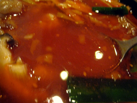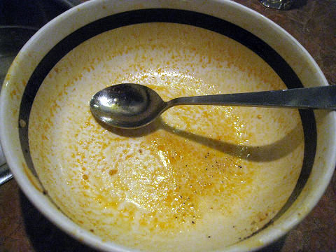 スープまで完飲するとお腹一杯〜。(辛くないので汗はかかない...(^^;;)