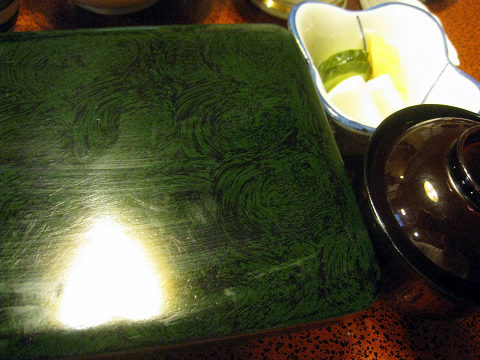うなぎ重箱は、豆腐入り肝吸い、香の物付き。