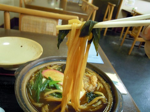 超長い麺は味噌煮込みうどん独特のアルデンテ麺では無くて、