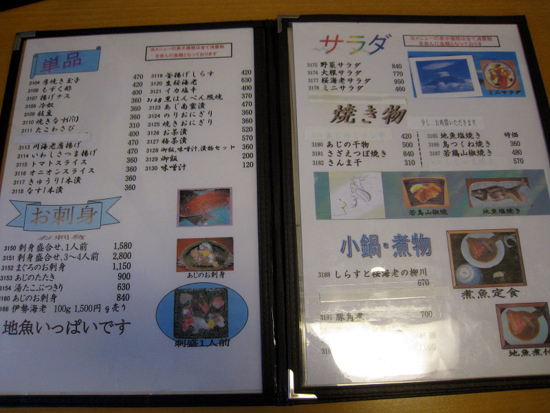 「地魚塩焼き」が何か尋ねたところ、今日は「鯵」か「太刀魚」になるとのこと。
